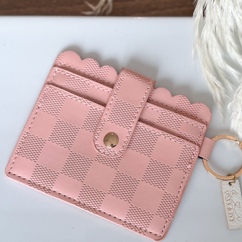 Keep your essentials organized with our Onyx & Ivy card holders — a stylish solution for every day. Available in a range of cheerful colours and prints, each piece is crafted with a scalloped edge detail, secure snap closure, and handy keyring. Perfect for holding cards, cash, or keys, these compact accessories slip easily into your pocket, bag, or wristlet while adding a pop of personality.