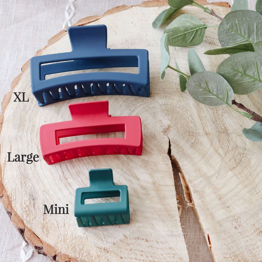Our largest claw clip made for long + thick hair. Onyx+Ivy claw clips are finished with a smooth matte coating and have extra teeth on the interior for maximum hold.